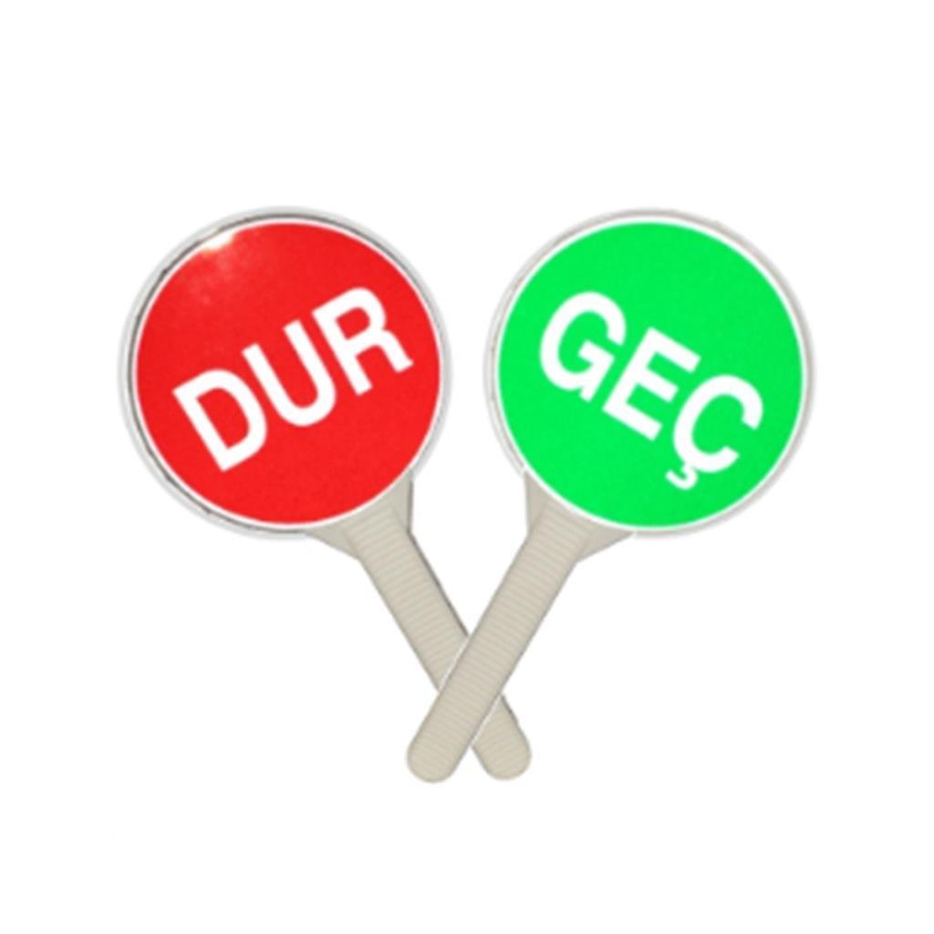 Yazılı kısım 20 cm çapındadırÇift taraflı reflektörlü malzeme kullanılmıştırKırmızı reflektörlü yüzeyde DUR yazmaktadırYeşil Reflektörlü yüzeyde GEÇ yazmaktadırAvm araç giriş-çıkışlarında,Havalimanı kapı kontrol noktalarında,Öğrenci okul geçitlerinde,Şantiye sahası giriş-çıkışlarında kullanılır.