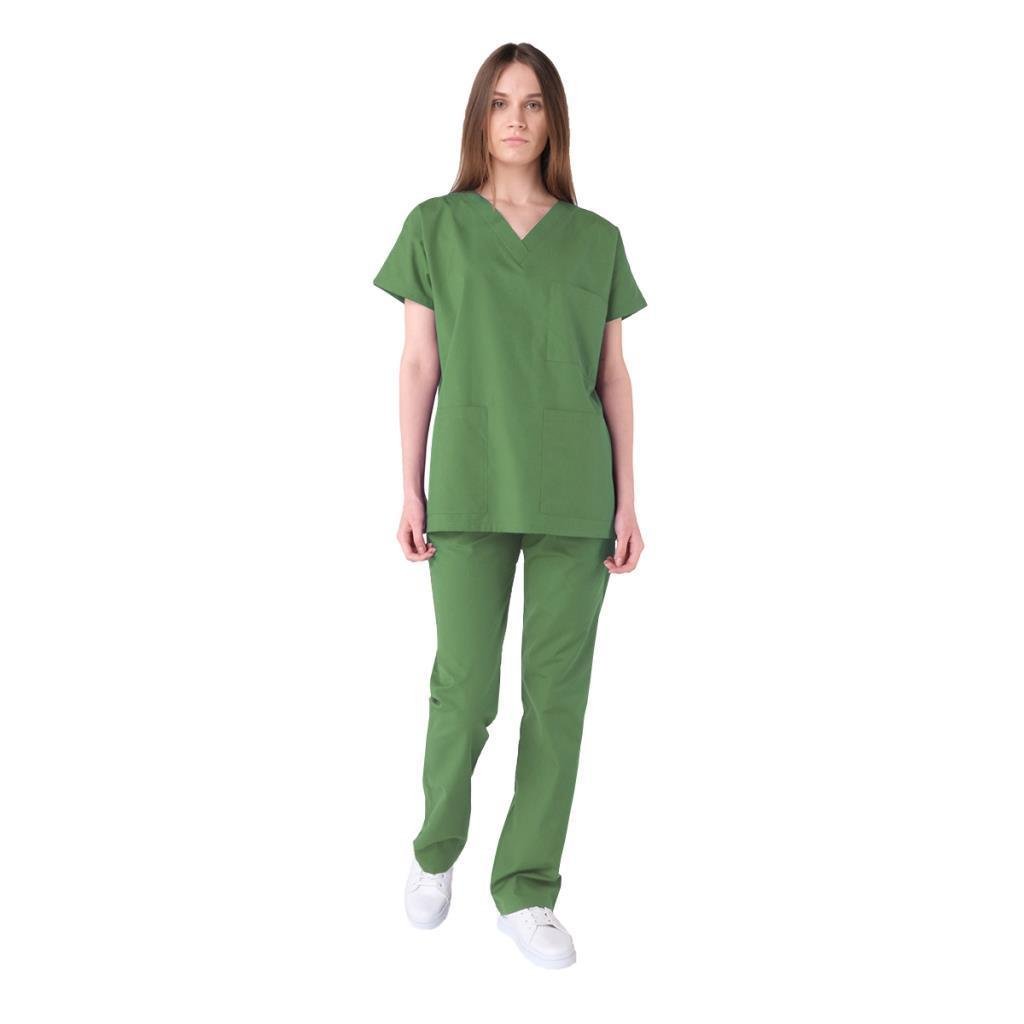 Teknik Tanım: Antibakteriyel ve su itici aprelidir. Ergonomik kalıpla tasarlanmıştır. İki parçadan oluşmaktadır. Pantolonda sağ ve solda standart iki cep, arkada bir cep; önlükte ise sağ ve solda standart iki cep ile birlikte sağ göğüs hizasında bir cep bulunmaktadır. Toplam altı adet cebe sahiptir. Pantolonun kemer kısmı tamamen lastiklidir ve sonrasında bağlamak için ip mevcuttur. Önlüğün her iki yanına yırtmaç uygulanmıştır. Kalıplarımız erkekler ve kadınlar için ayrı olarak düzenlenmiştir. Ürünün diğer renk ve kalıplarına mağazamızdan ulaşabilirsiniz. Özellikle sağlık kurumu çalışanları için tercih edilebilir ve kullanılabilir. Tekrar yıkanıp kullanılabilir. Antibakteriyel ve sıvı itici özelliği maksimum 25 yıkamadan sonra düşmeye başlar.